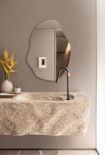 Jeho tvar, rám i provedení zásadně ovlivňují celkový styl interiéru. Zatímco kulaté zrcadlo působí jemně a harmonicky, hranaté tvary přinášejí do prostoru řád a moderní geometrii. Styl rámu dokáže proměnit atmosféru celé místnosti – minimalistický kovový rám podtrhne industriální vzhled, přírodní dřevo přinese hřejivost a útulnost, zatímco vintage rám dodá nádech elegance a nostalgie. Velmi oblíbená jsou i bezrámová zrcadla, která ladí s moderním a čistým designem. Skvělým tipem je zrcadlo pojmout jako ústřední designový prvek – například zvolit asymetrický tvar nebo model s podsvícením, který koupelně dodá jedinečný charakter a zároveň prakticky osvětlí prostor.