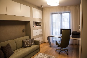 Projekt olomouckého bytu pro dvojici aktivních, pracujících lidí ve středním věku je jedinečnou ukázkou perfektního propojení luxusního vyznění, prvotřídních přírodních materiálů, ale také nadstandardních technik a postupů jejich zapracování do prostoru, naprosto výjimečné barevné kombinace, která celý přírodní charakter podtrhuje a zcela zřejmě a záměrně přiznává, ale i technické dokonalosti v podobě automatizovaných pojezdů, ovládání kuchyňských spotřebičů či úložných zásuvek a dalších prostor. Velkorysý koncept této bytové realizace jde ruku v ruce se současnými trendy, které kladou právě na elegantní, přitom ale vysoce funkční propojení designu, funkcionality a technické dokonalosti maximální důraz. Můžeme s hrdostí prohlásit, že se nám to u tohoto projektu povedlo splnit na maximum.