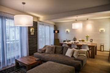 The apartment for this active, working, middle-aged couple is an example of perfect symphony of luxurious tones, first-class natural materials, superior techniques, spacing, exclusive color palette and technical prowess, which is reflected in automated rail-runners, storage drawers, kitchen appliances and all over the place. The broad concept of this project goes hand in hand with today’s trends that put a lot of stress on elegant yet highly functional and technologically advanced design. We can proudly state that we have achieved this to the fullest.