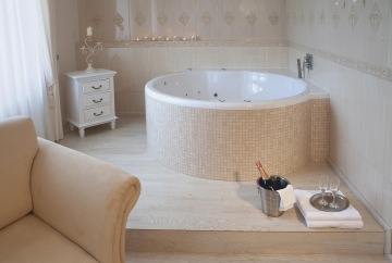 We were not put off by the combination of rustic and traditional furniture in the hotel rooms - on the contrary, we used it to underline the atmosphere of the hotel and stress the genus loci, that is no doubt abundant at this place overseeing the dam. The same way we combined colors. Heavy, optically dense and spatially condensed reds in the rooms are complemented with more open, airy beige or traditional stripes. It is all crowned by a luxury wedding room that makes the “big day” an unforgettable experience. And of course - the bathrooms, the integral part of any accommodation, were not overlooked. See for yourselves.