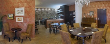 The common areas at the lowest floor were also remade. Here too we had to stick to the set concept. Many a visitor will nostalgically recollect the days, when just this style - at the edge of rustic and modern - was quite the norm. The wooden elements, retro details, darker, denser colors - it all makes this a perfect place, and not just for gourmands.