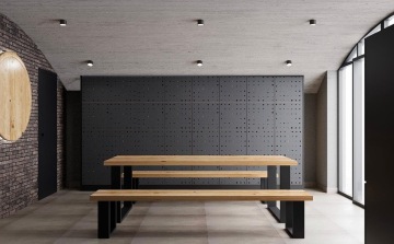 The interior of the wine cellar is designed to create a unique and welcoming atmosphere, combining various interesting elements. It blends the vineyard theme with Czech art, modern design features, and a variety of materials.